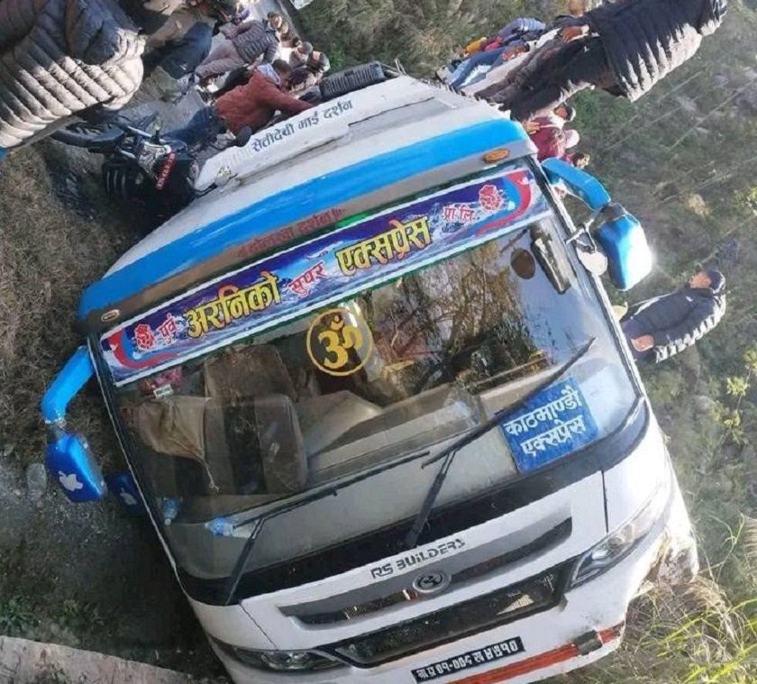 दोलखाबाट काठमाडौंतर्फ आउँदै गरेको बस सिन्धुपाल्चोकमा दुर्घटना